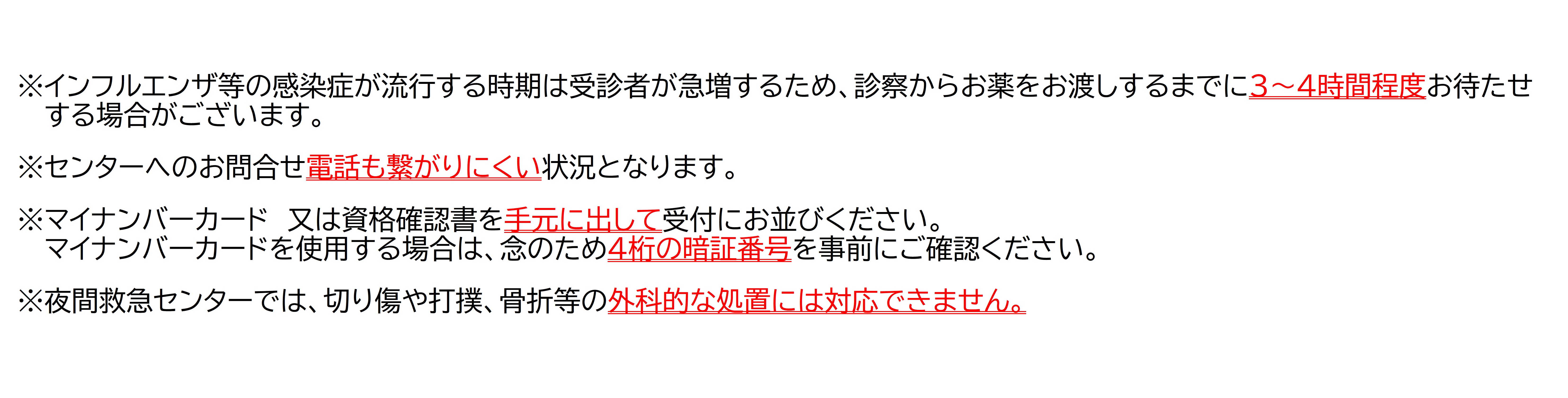 ◆救急医療機関(公的病院救急外来や救急告示病院)とは、急なけがや病気をした時に対応するところです。便利な時間外診療ではありませんので、気軽に受診することは避けましょう。
