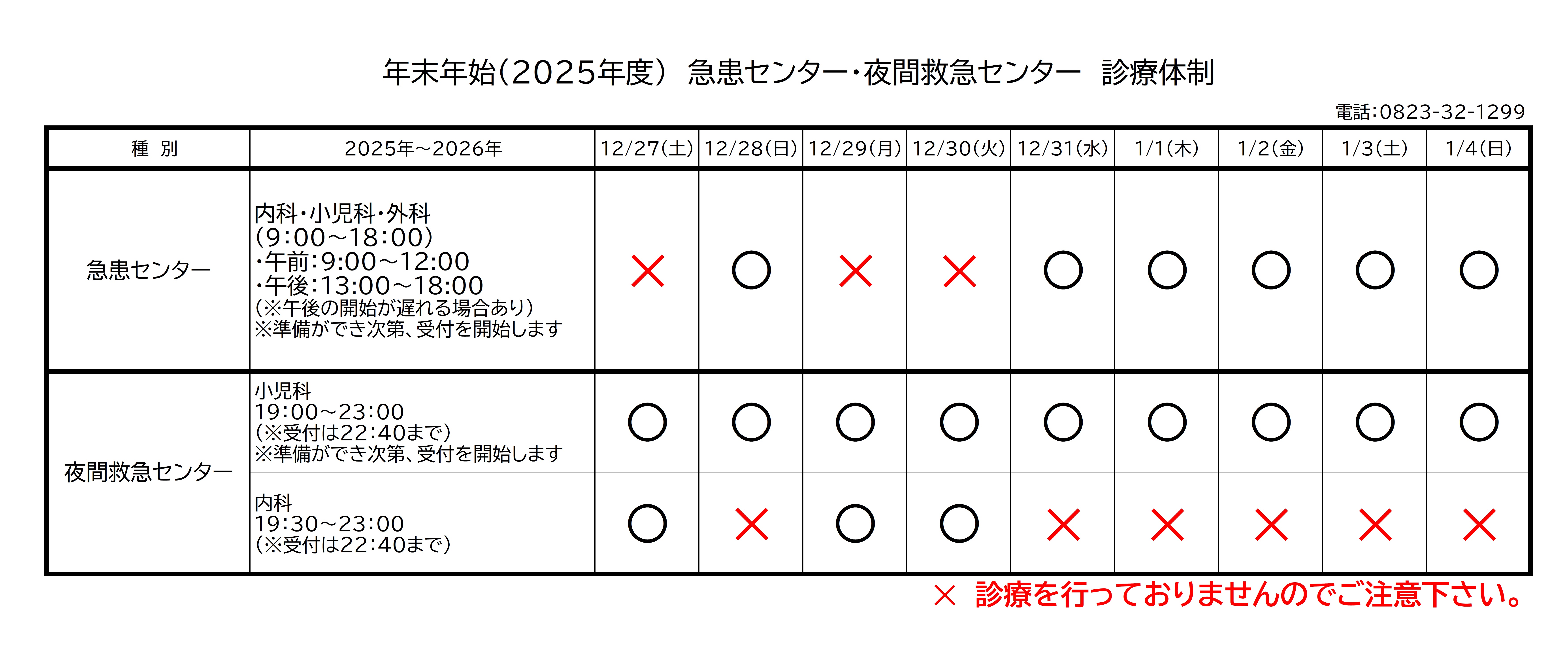 当番病院名などのお問い合わせは上記番号へお願いします。(23:00以降は録音テープによるご案内になります)